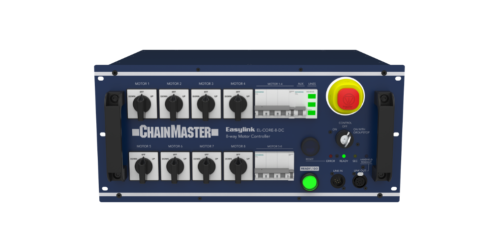 The EASYLINK Control Series by CHAINMASTER offers a versatile and reliable solution for modern lifting and stage applications. Designed with flexibility in mind, EASYLINK supports a wide range of motor configurations and channel options, allowing operators to choose the setup that best fits their needs.
